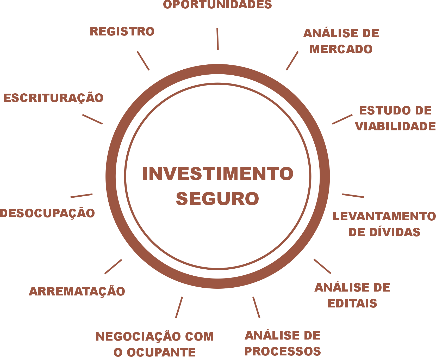 Mapeamento de leilões, análise de risco e seleção dos melhores ativos para o seu perfil.